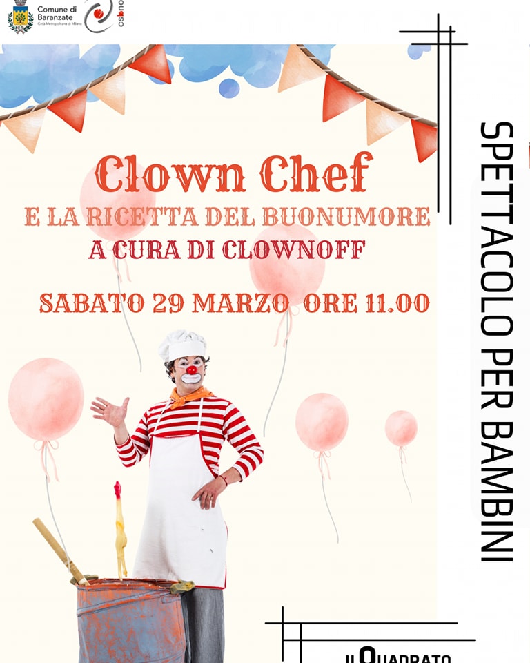 Si racconta la quotidianità  di un clown chef unico e solo protagonista  nella sua cucina che è anche la sua abitazione in cui si sveglia di buon mattino si prepara la colazione mezzo addormentato si veste a ritmo di musica e si mette all’ opera: preparare una ricetta mai tentata prima d’ora dalla cucina tradizionale, la ricetta del buonumore. Tra gli ingredienti certo, dolci e biscotti non possono mancare ma questi hanno qualcosa di speciale, sono preparati infatti con un tocco di magia. Cos’altro finirà nel grosso pentolone dove prepara la ricetta in questione ..mosche? ..calzini? … pesce fresco! così fresco che viene pescato lì sul momento, ma soprattutto mette in pentola un grande sorriso, un  bel ricordo della sera prima e una canzone ben intonata un mix esplosivo insomma di buon umore appunto. Solo in scena dicevamo ma non per questo senza antagonisti, riceve infatti la visita di un terribile Topolino, un uovo si schiuderà per dare alla luce un Uccellino immaginario a cui insegnerà a volare… già volare un clown chef sa far volare di tutto arance , salamini è un abile giocoliere volete che non insegni a volare ad un tenero e dolce uccellino? …e il dolce? … quasi dimenticavo e il dolce dove è finito?….. attento clown chef o ti cadrà in faccia!! Anche questo è un ingrediente prezioso da mettere nel pentolone..cos’altro manca? Si è vero la canzone preferita cantata a squarcia gola…..e boom la ricetta del buon umore è servita, buon appetito ..ophs, buon divertimento.